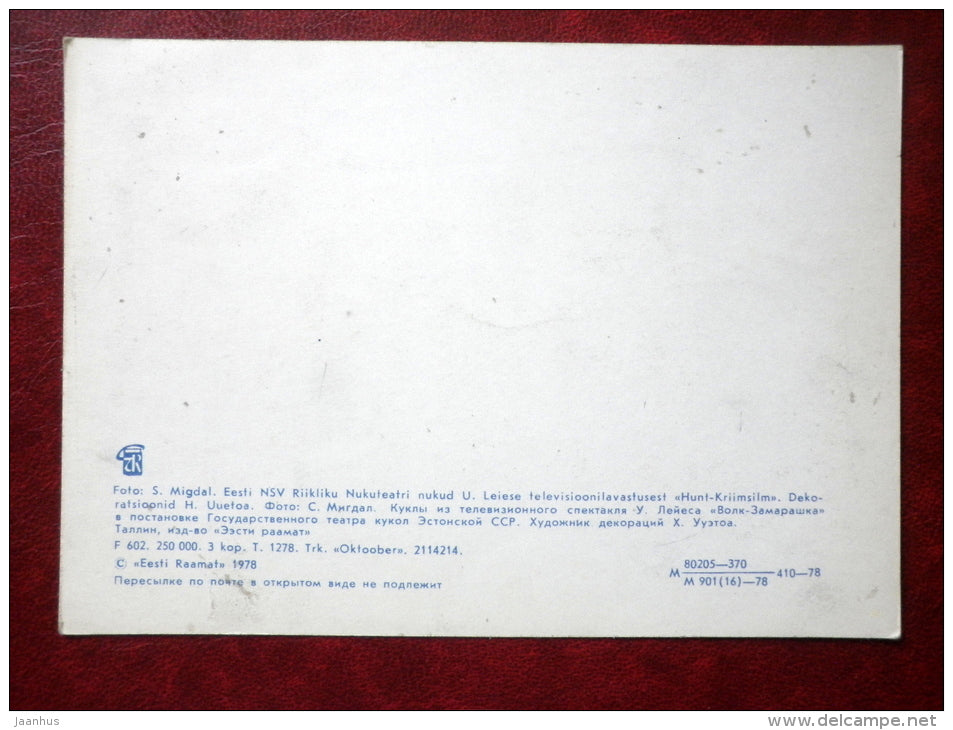 Neujahrsgrußkarte – Puppenspiel – Schneemann – Wolf – 1978 – Estland UdSSR – unbenutzt