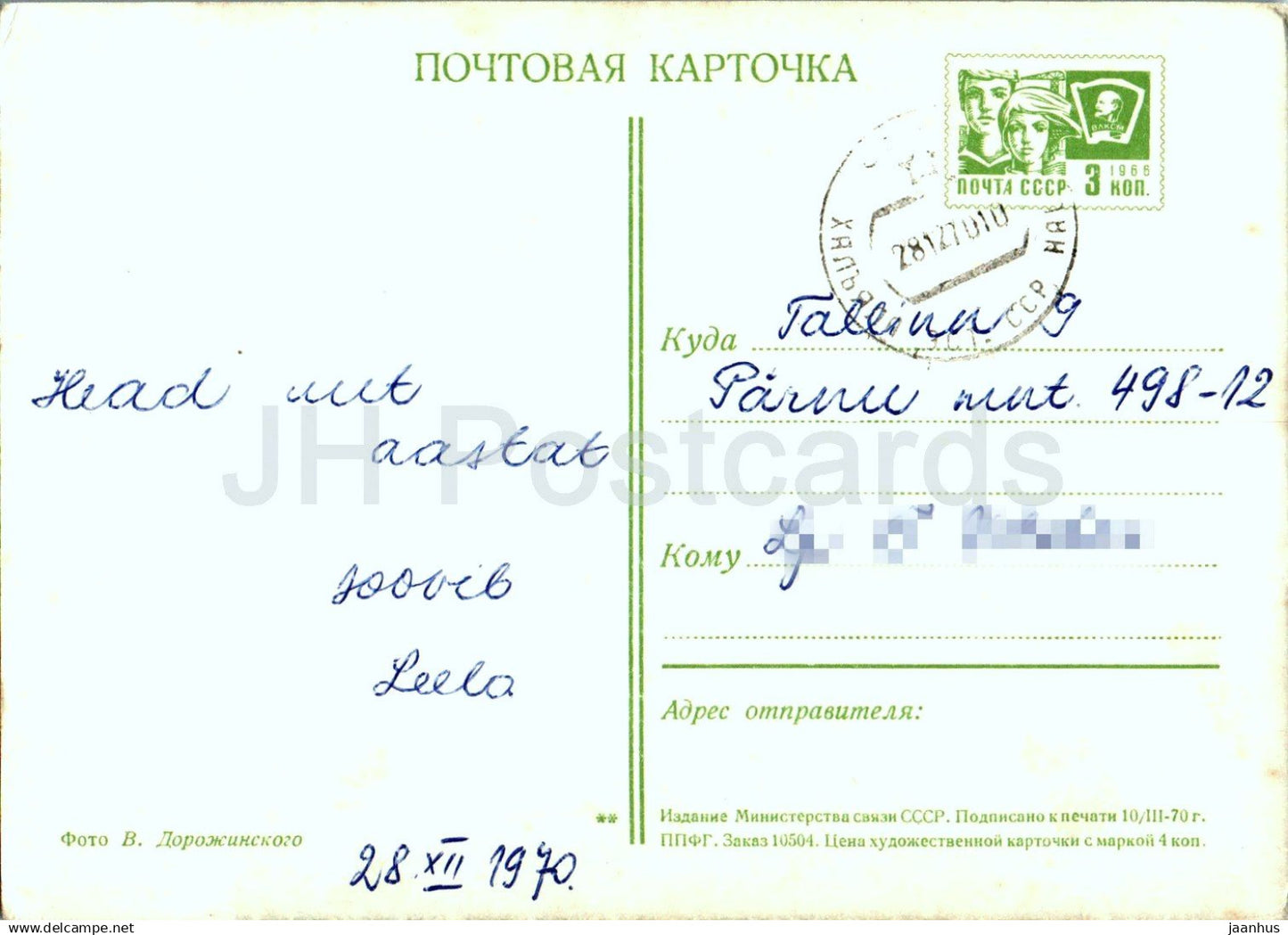 Neujahrsgrußkarte - Winterlandschaft - Ganzsache - 1970 - Russland UdSSR - gebraucht