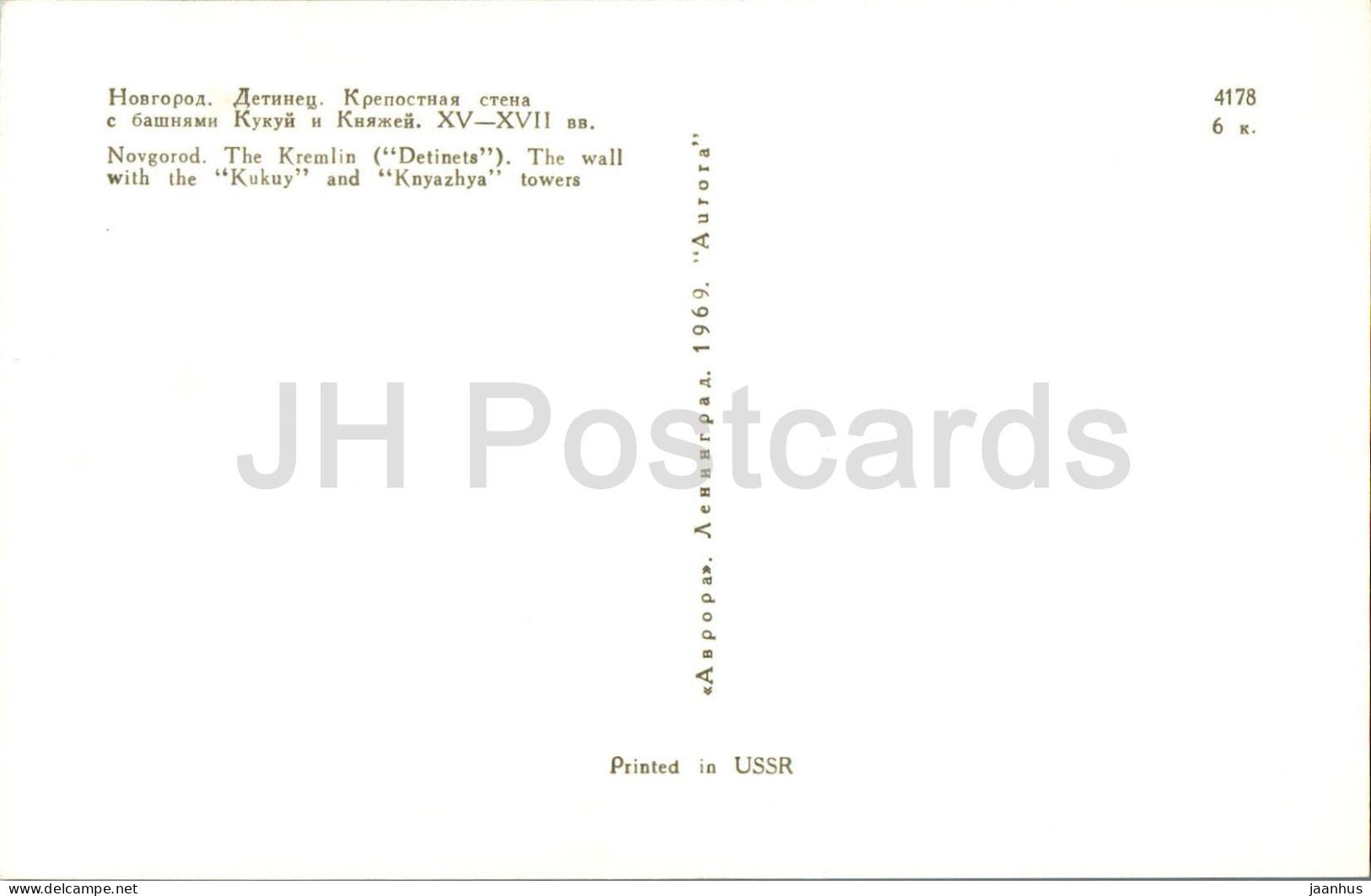 Nowgorod - Der Kreml (Detinets) - Die Mauer mit den Türmen Kukuy und Knyazhya - 1969 - Russland UdSSR - unbenutzt