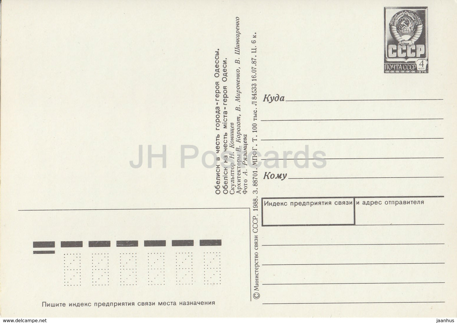Odessa - Obelsik zu Ehren der Stadt des Helden von Odessa - Ganzsache - 1988 - Ukraine UdSSR - unbenutzt