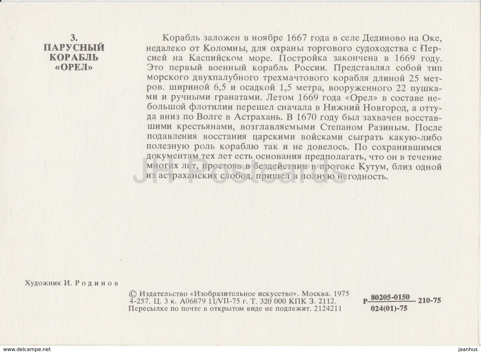 Oryol - Kriegsschiff - Segelschiff - Geschichte der russischen Marine - 1975 - Russland UdSSR - unbenutzt