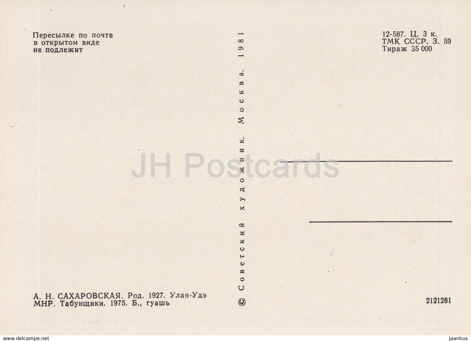 Gemälde von A. Sacharowskaja – Herders. Mongolei - Pferd - Russische Kunst - 1981 - Russland UdSSR - unbenutzt