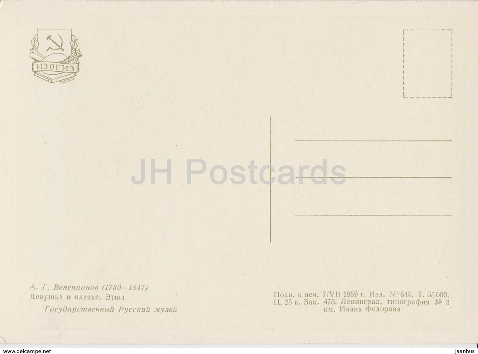 Gemälde von A. Venetsianov – Mädchen mit Kopftuch – Russische Kunst – 1959 – Russland UdSSR – unbenutzt
