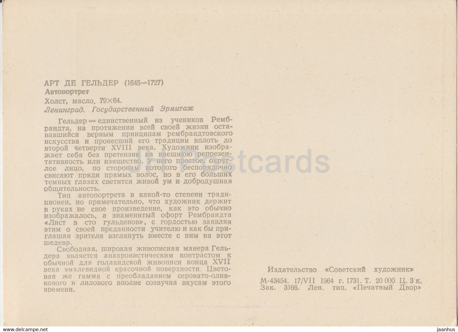 Gemälde von Aert de Gelder – Selbstporträt – niederländische Kunst – 1964 – Russland UdSSR – unbenutzt