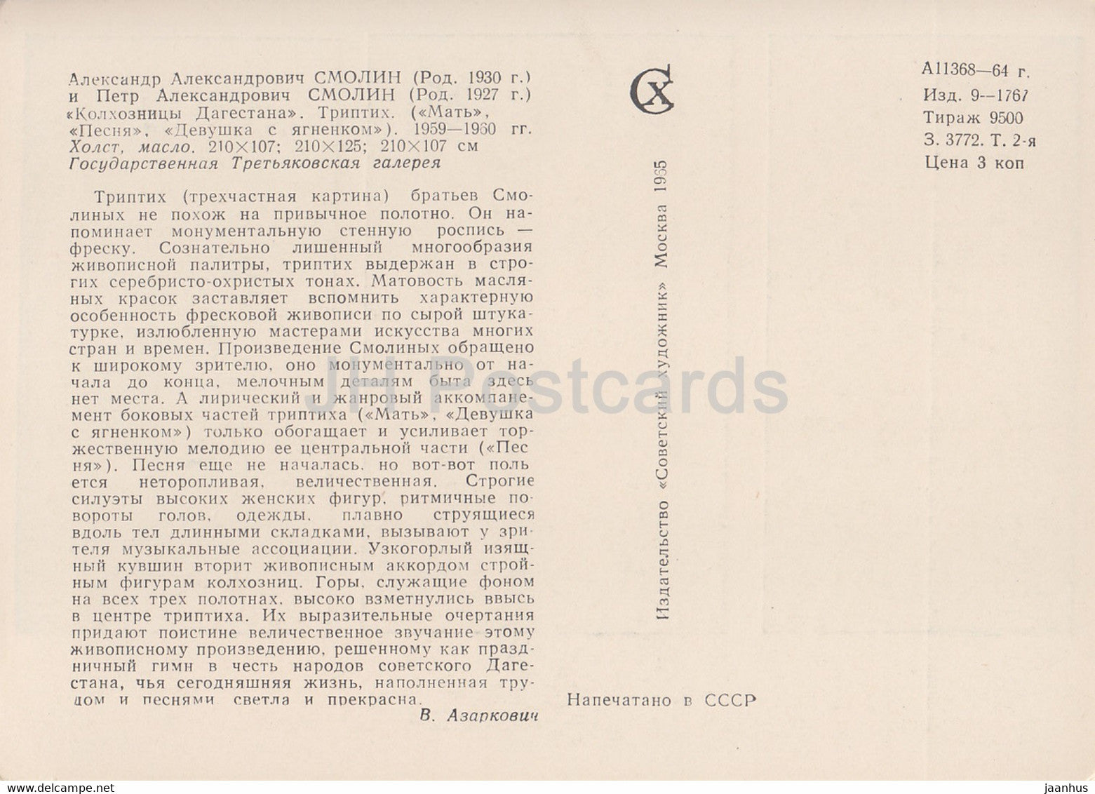 Gemälde von Alexander und Pjotr Smolin – Mutter – Dagestaner Kolchosenarbeiter – Russische Kunst – 1965 – Russland UdSSR – unbenutzt