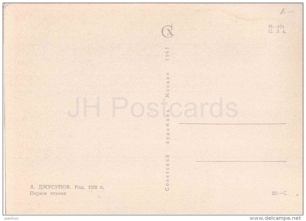 Gemälde von Ali Dzhusupov – Erste Lesung, 1963 – Kinder – Kunst aus Kasachstan – unbenutzt