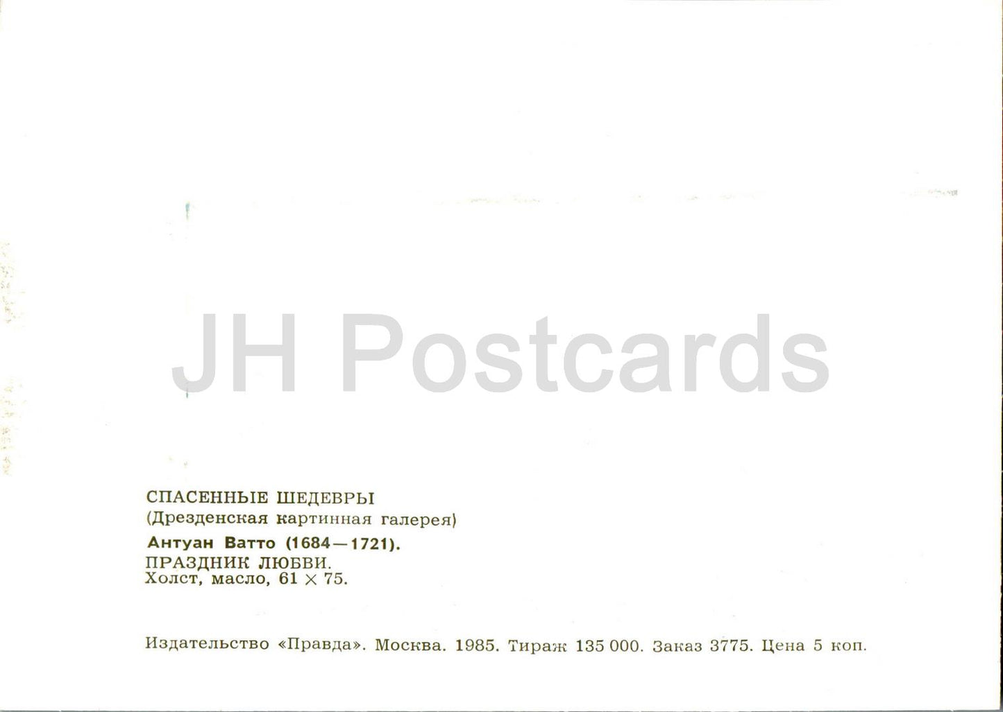 Gemälde von Antoine Watteau – Feiertag der Liebe – Französische Kunst – 1985 – Russland UdSSR – unbenutzt