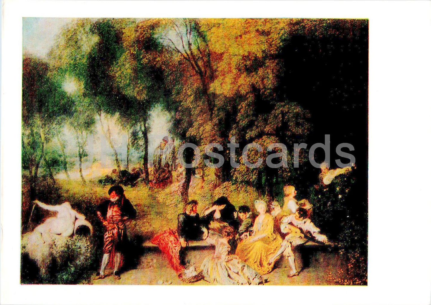 Gemälde von Antoine Watteau – Menschen im Park – Französische Kunst – 1985 – Russland UdSSR – unbenutzt