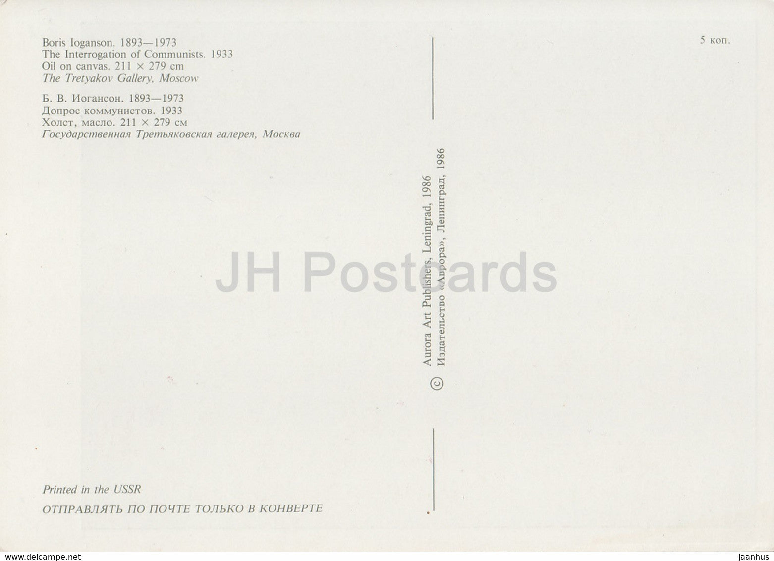 Gemälde von Boris Ioganson – Das Verhör der Kommunisten – Russische Kunst – 1986 – Russland UdSSR – unbenutzt