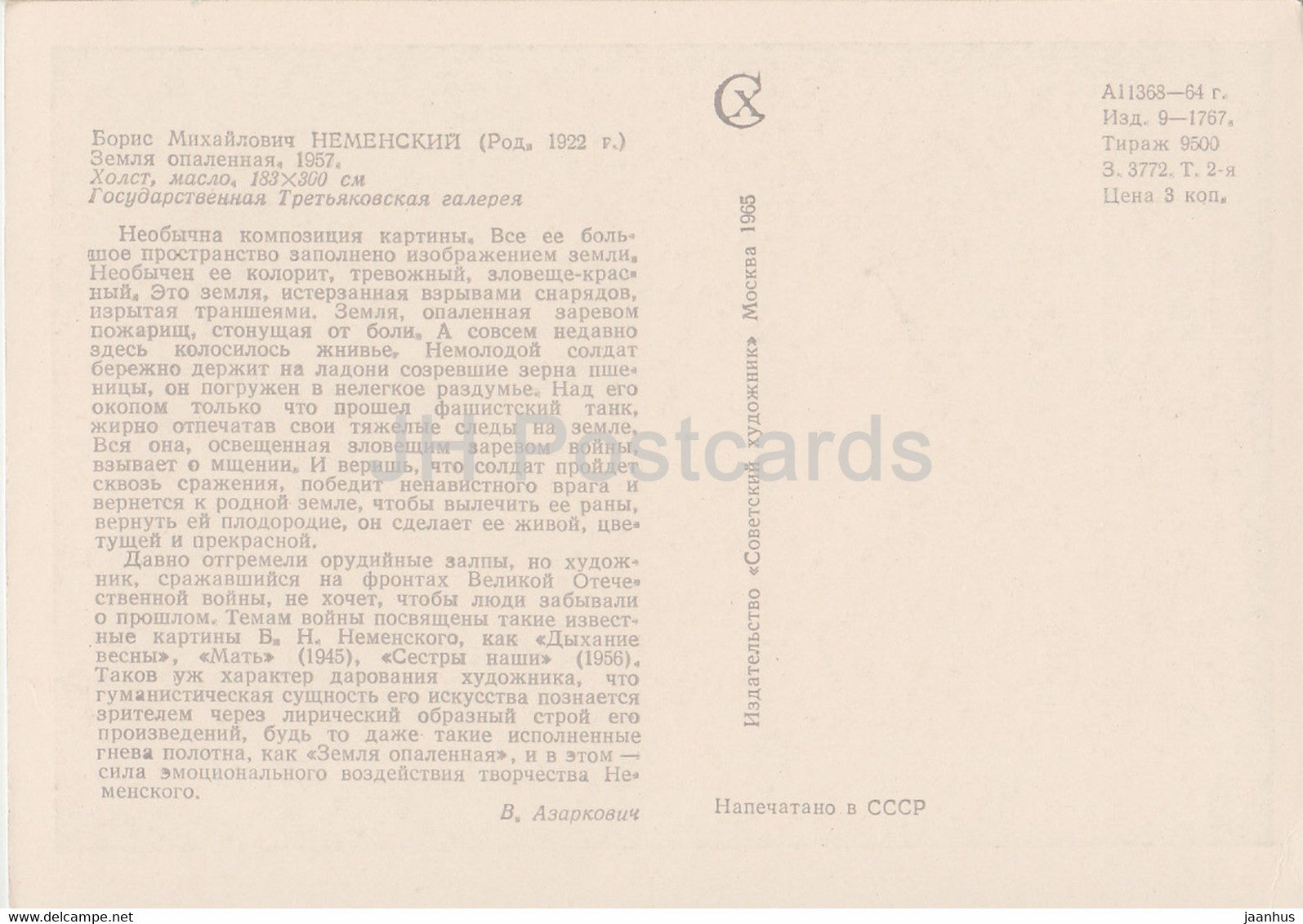 Gemälde von Boris Nemensky – Verbrannte Erde – Krieg – Militär – Russische Kunst – 1965 – Russland UdSSR – unbenutzt