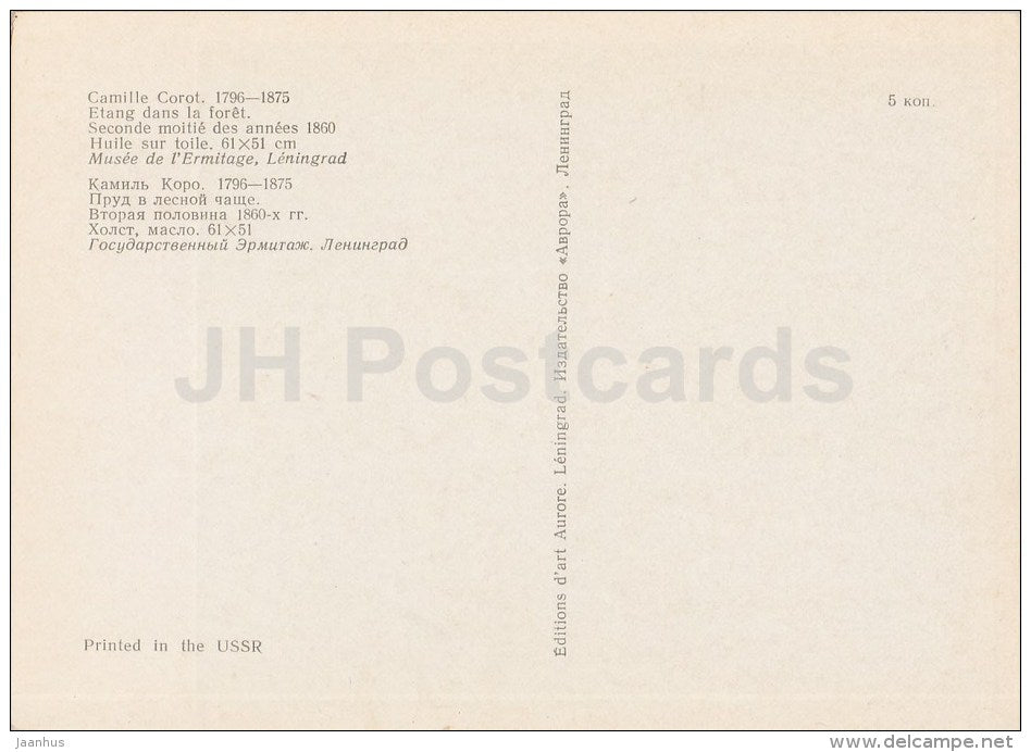 Gemälde von Camille Corot – Etang dans la foret, 1860 – Französische Kunst – 1975 – Russland UdSSR – unbenutzt