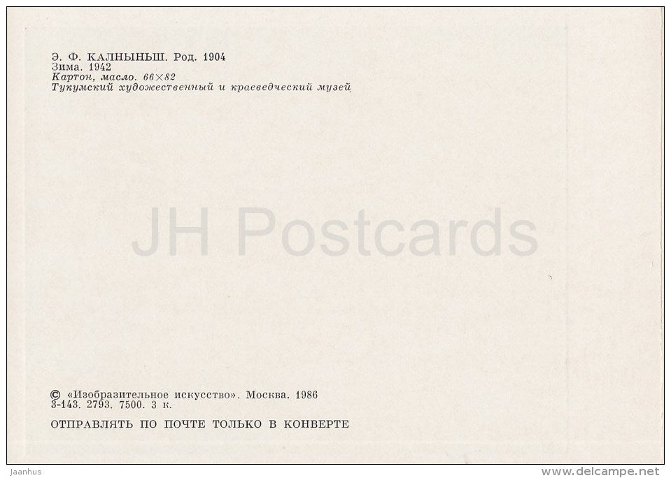 Gemälde von E. Kalnins – Winter, 1942 – Lettische Kunst – 1986 – Russland UdSSR – unbenutzt
