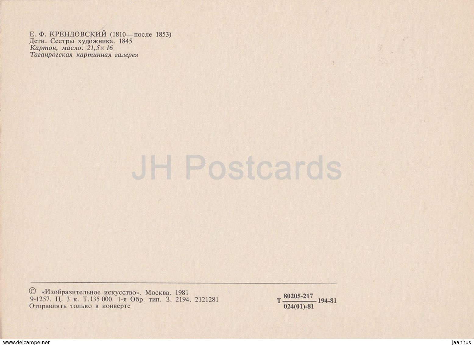 Gemälde von E. Krendovsky – Kinder – Künstlerschwestern – Russische Kunst – 1981 – Russland UdSSR – unbenutzt