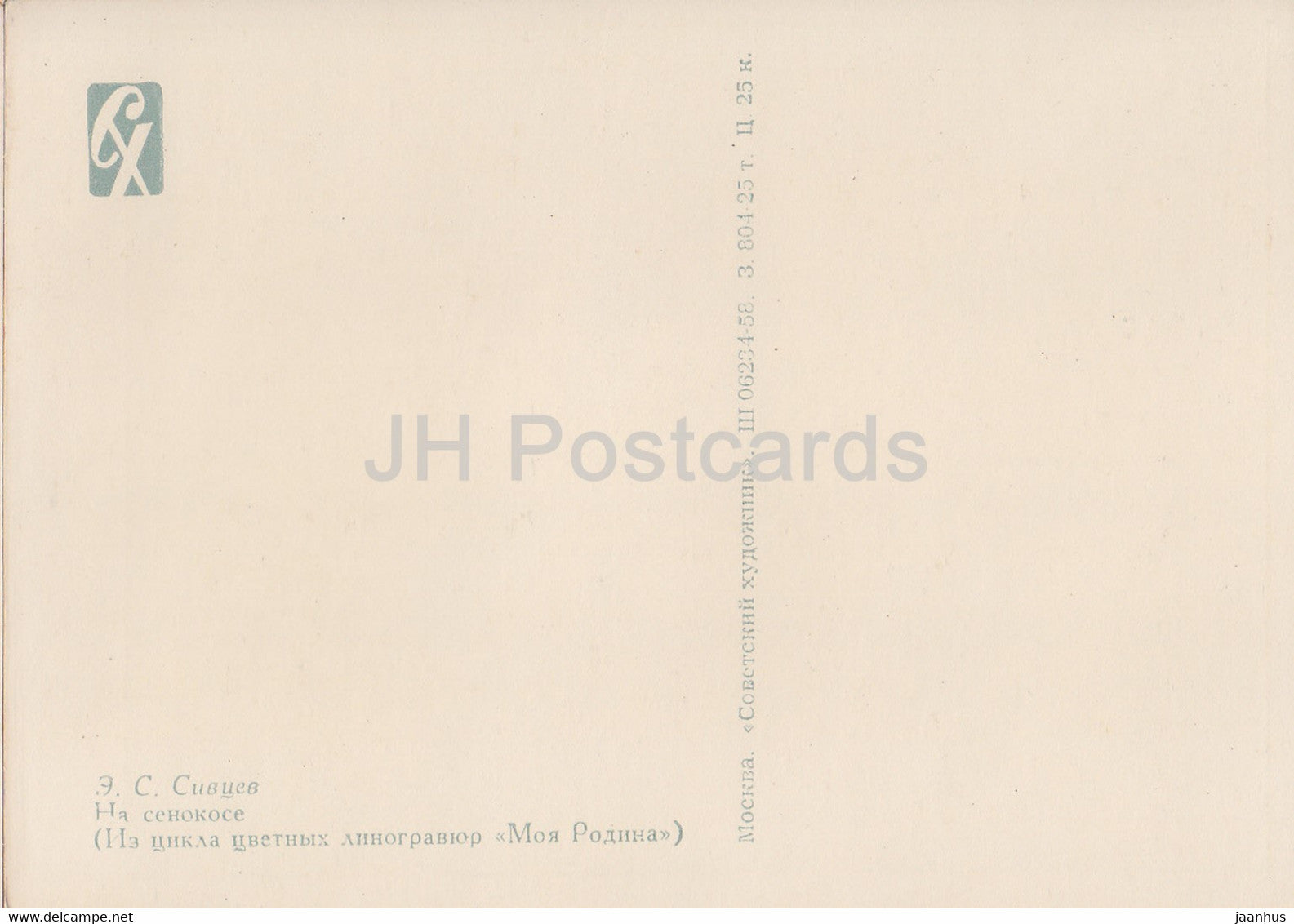Gemälde von E. Sivtsev – bei der Heuernte – Jakutien Sacha Russische Kunst – 1958 – Russland UdSSR – unbenutzt