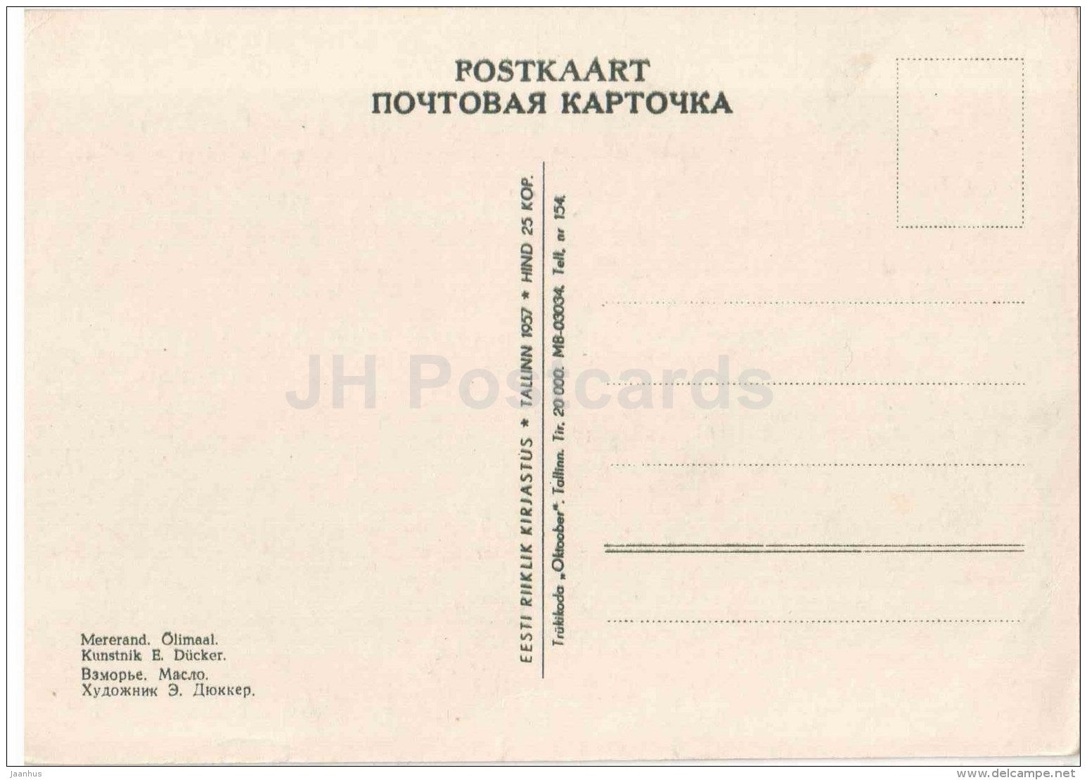 Gemälde von Eugen Gustav Dücker – Meeresküste – Deutsche Kunst – 1957 – Estland UdSSR – unbenutzt