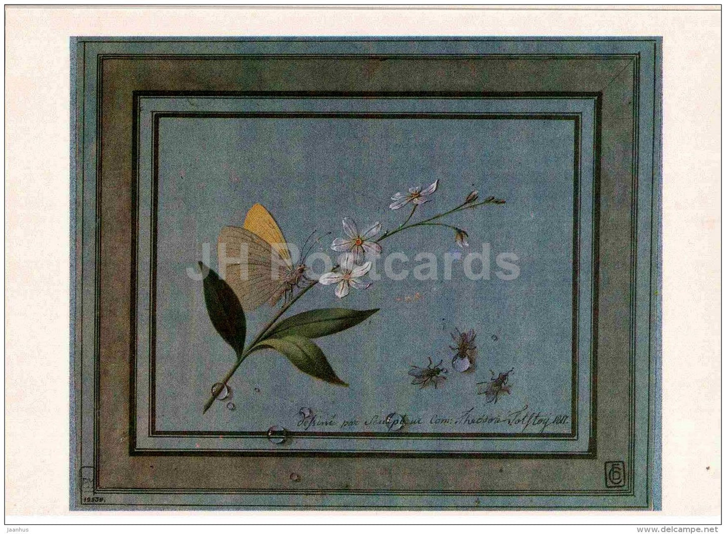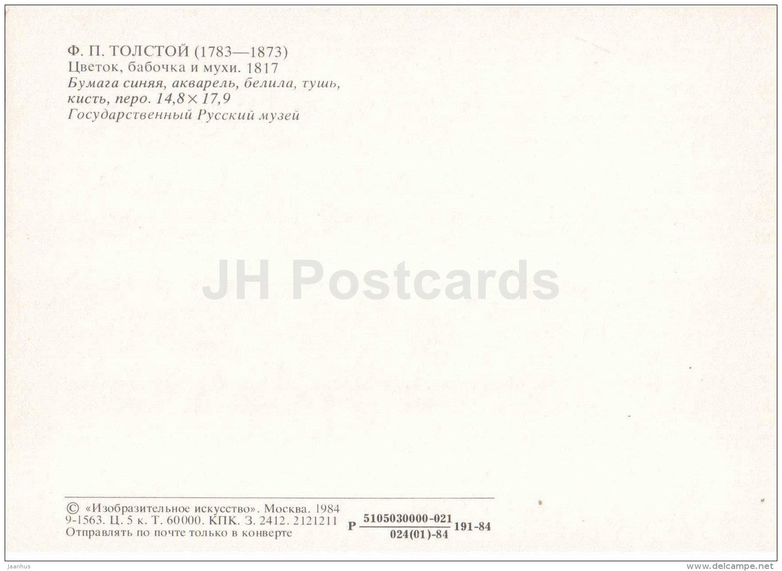 Gemälde von F. Tolstoi – Blume, Schmetterling und Fliegen, 1817 – Russische Kunst – 1984 – Russland UdSSR – unbenutzt