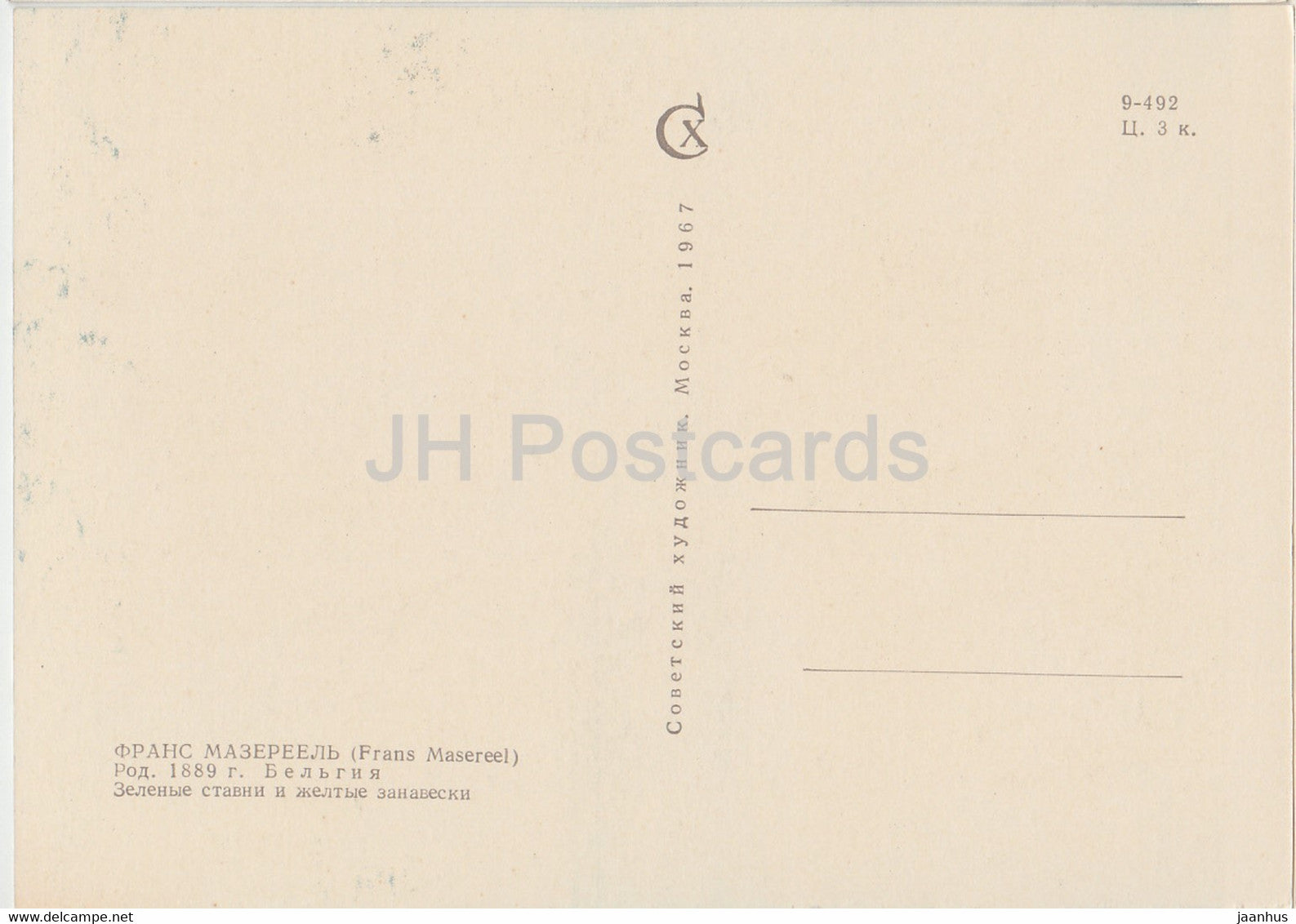 Gemälde von Frans Masereel – Grüne Fensterläden und gelbe Vorhänge – Flämische Kunst – 1967 – Russland UdSSR – unbenutzt