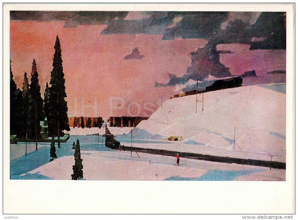 Gemälde von G. Nissky - 3 - In der Nähe von Moskau. Februar 1957 – Zug – russische Kunst – unbenutzt