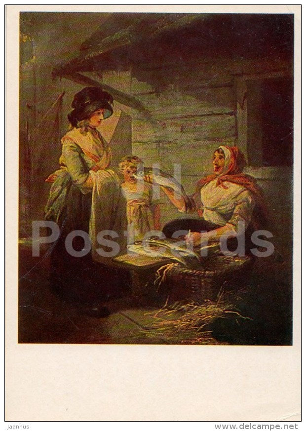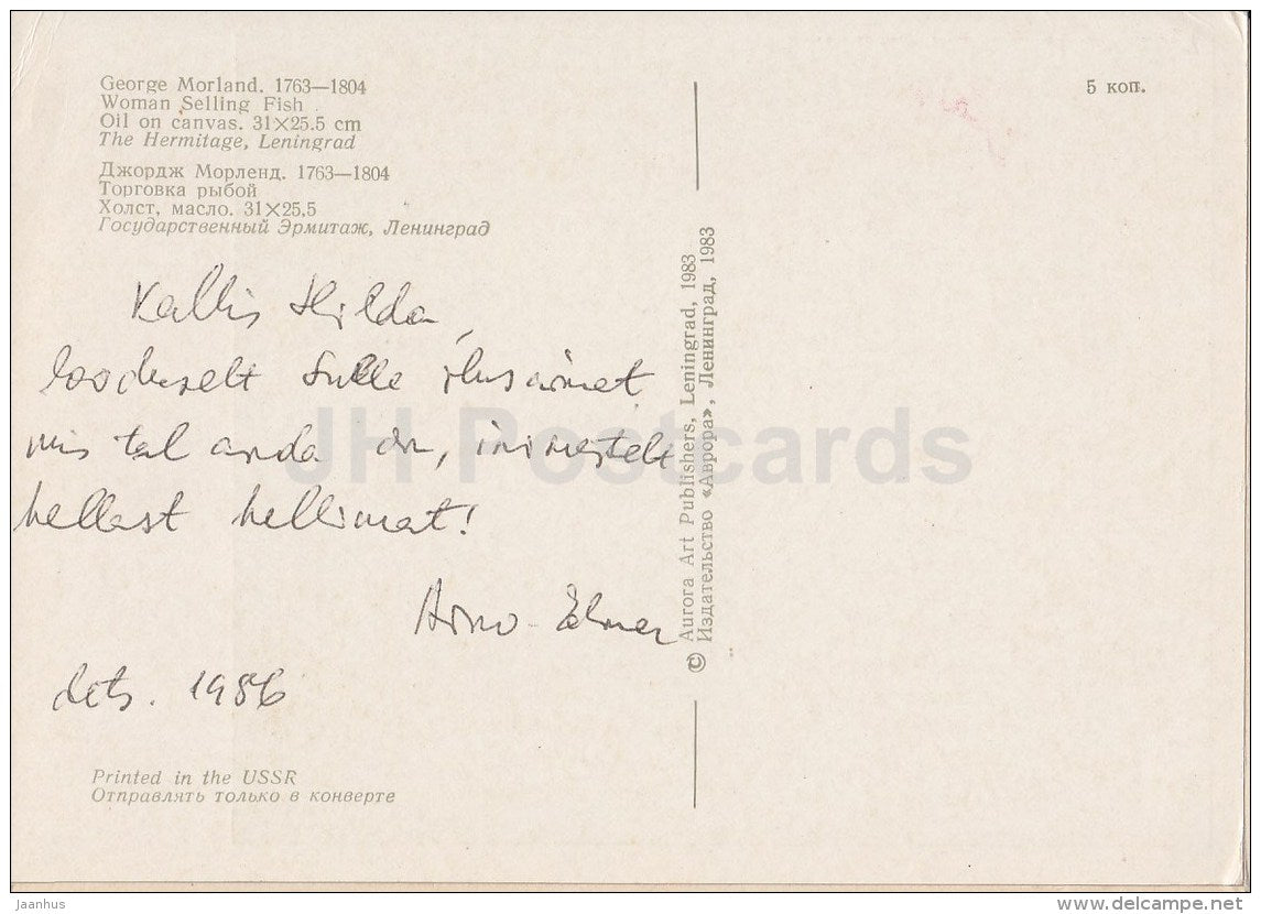 Gemälde von George Morland – Frau, die Fisch verkauft – Englische Kunst – Russische UdSSR – 1983 – gebraucht