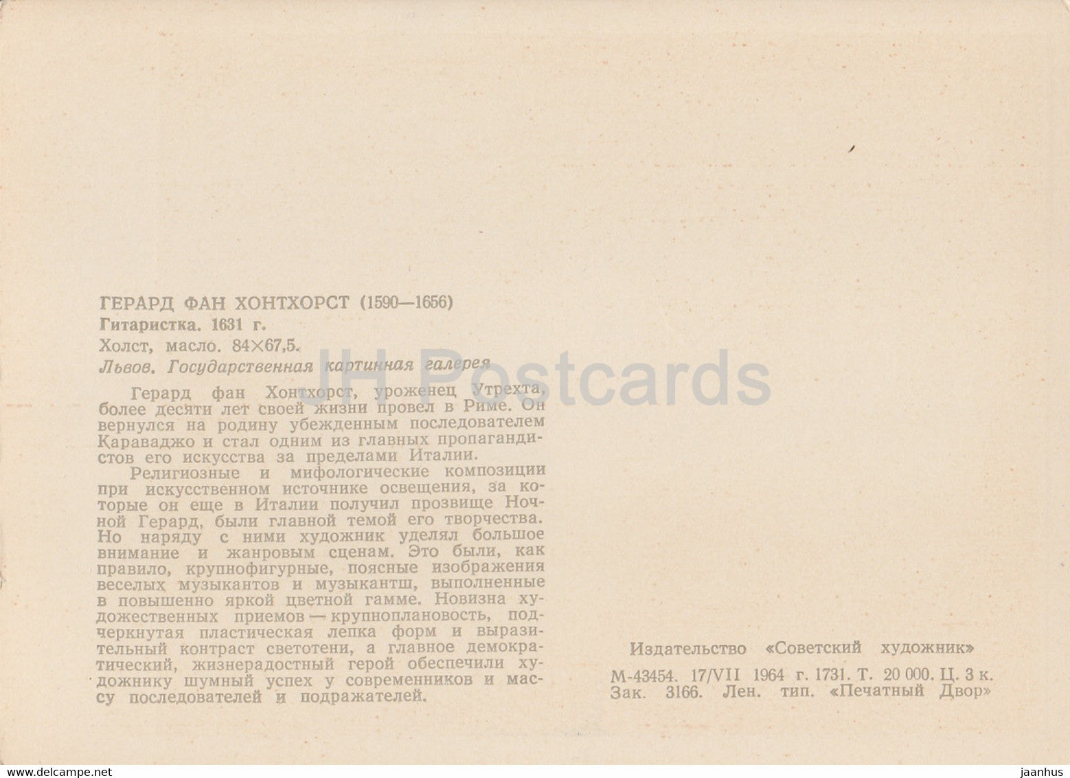 Gemälde von Gerrit van Honthorst – Gitarrist – Niederländische Kunst – 1964 – Russland UdSSR – unbenutzt