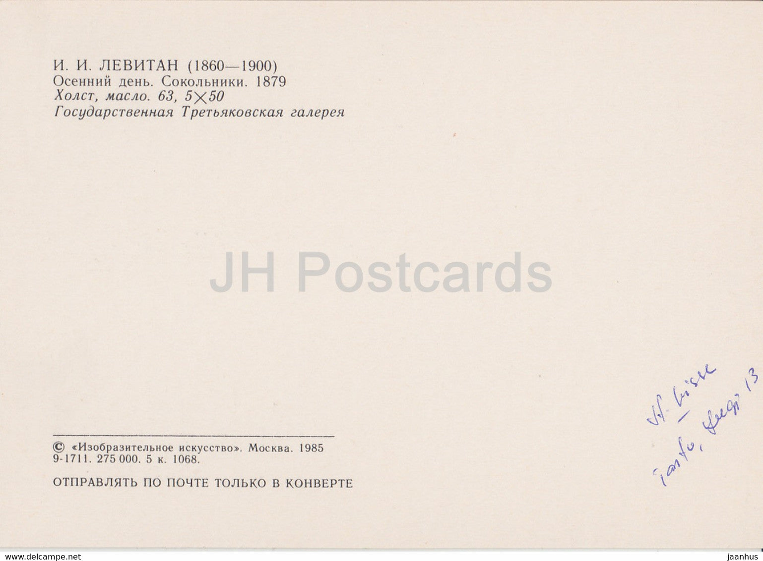 Gemälde von I. Levitan – Herbsttag – Sokolniki – Russische Kunst – 1985 – Russland UdSSR – gebraucht