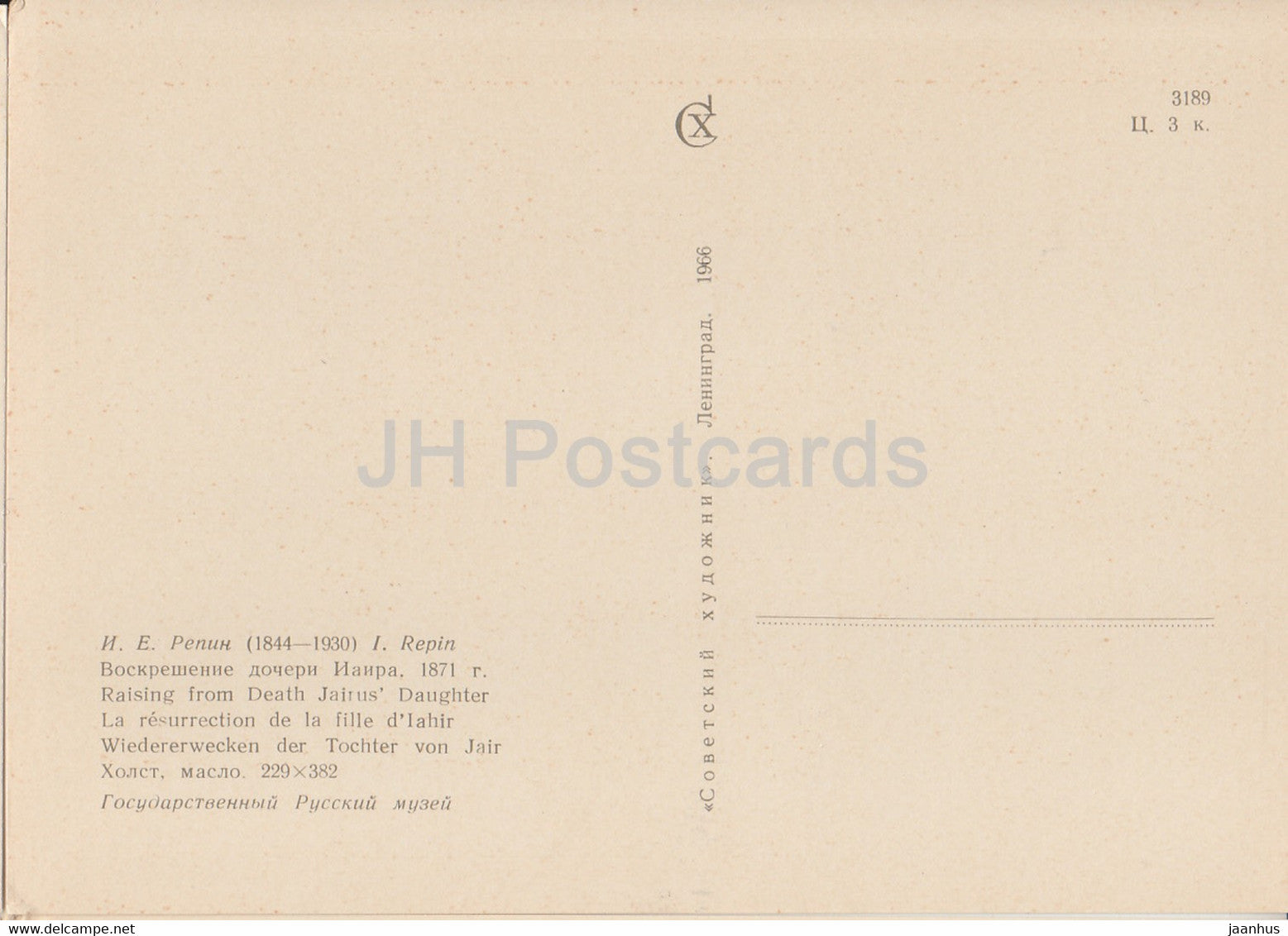 Gemälde von I. Repin – Auferstehung der Jairus-Tochter – Russische Kunst – 1966 – Russland UdSSR – unbenutzt