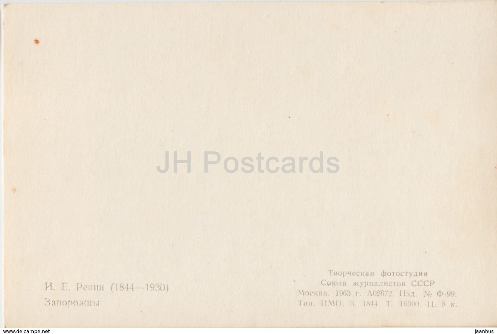 Gemälde von I. Repin – Antwort der Zaporozhian-Kosaken – 1963 – Russland UdSSR – unbenutzt