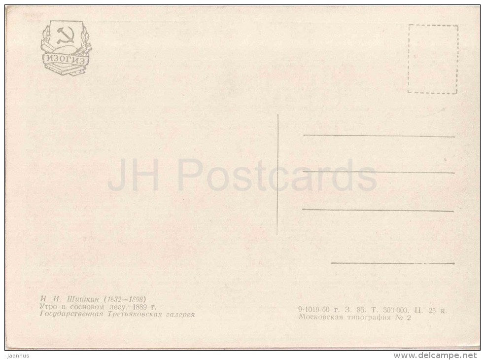 Gemälde von I. Shishkin – Morgen im Kiefernwald, 1889 – Bär – russische Kunst – unbenutzt