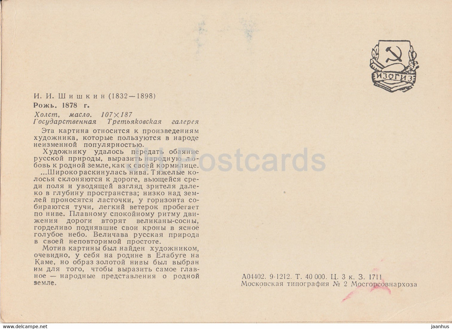 Gemälde von I. Shishkin – Rye Field – Russische Kunst – Russland UdSSR – unbenutzt