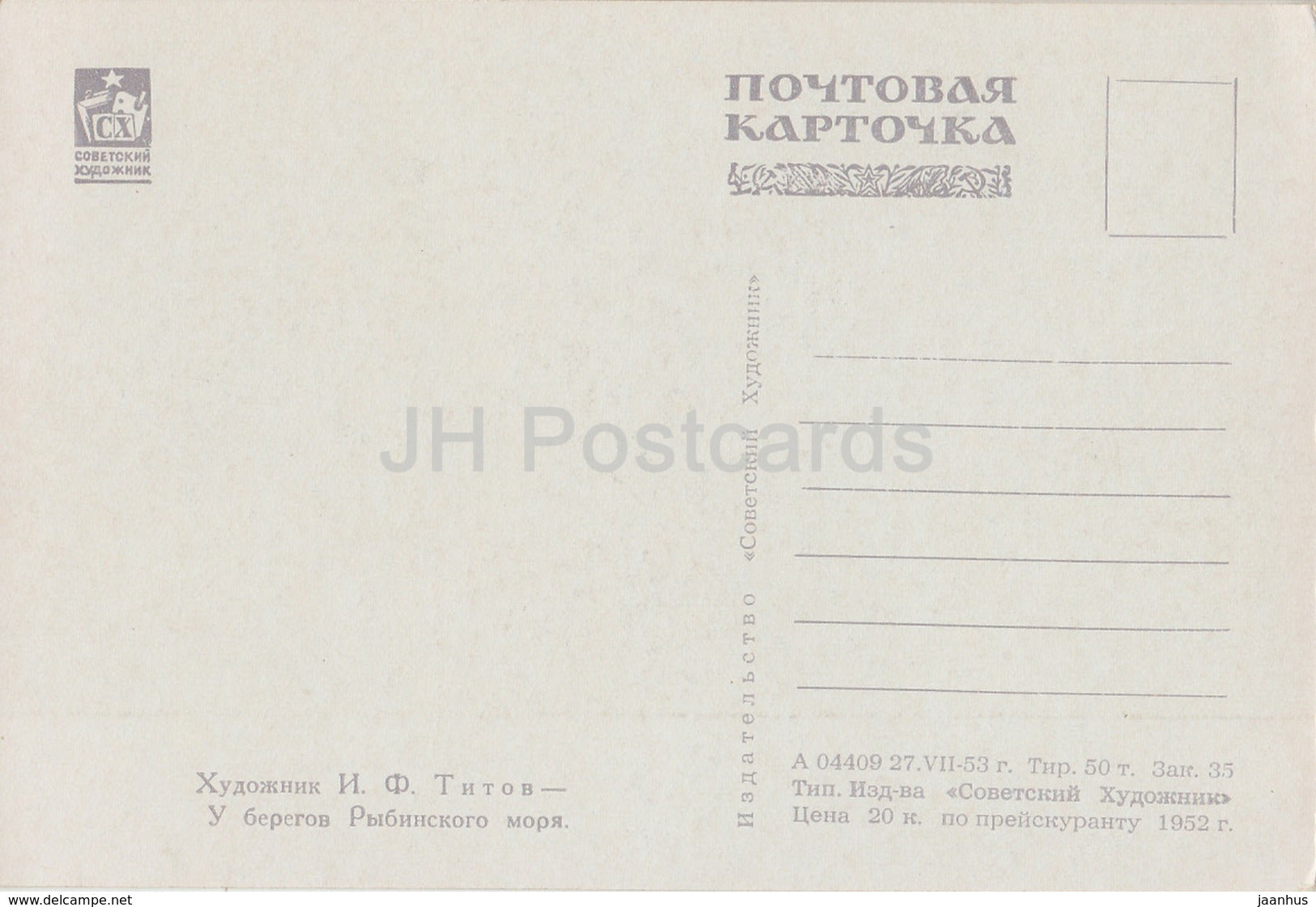 Gemälde von I. Titov – An der Küste des Rybinsker Meeres – Russische Kunst – 1953 – Russland UdSSR – unbenutzt