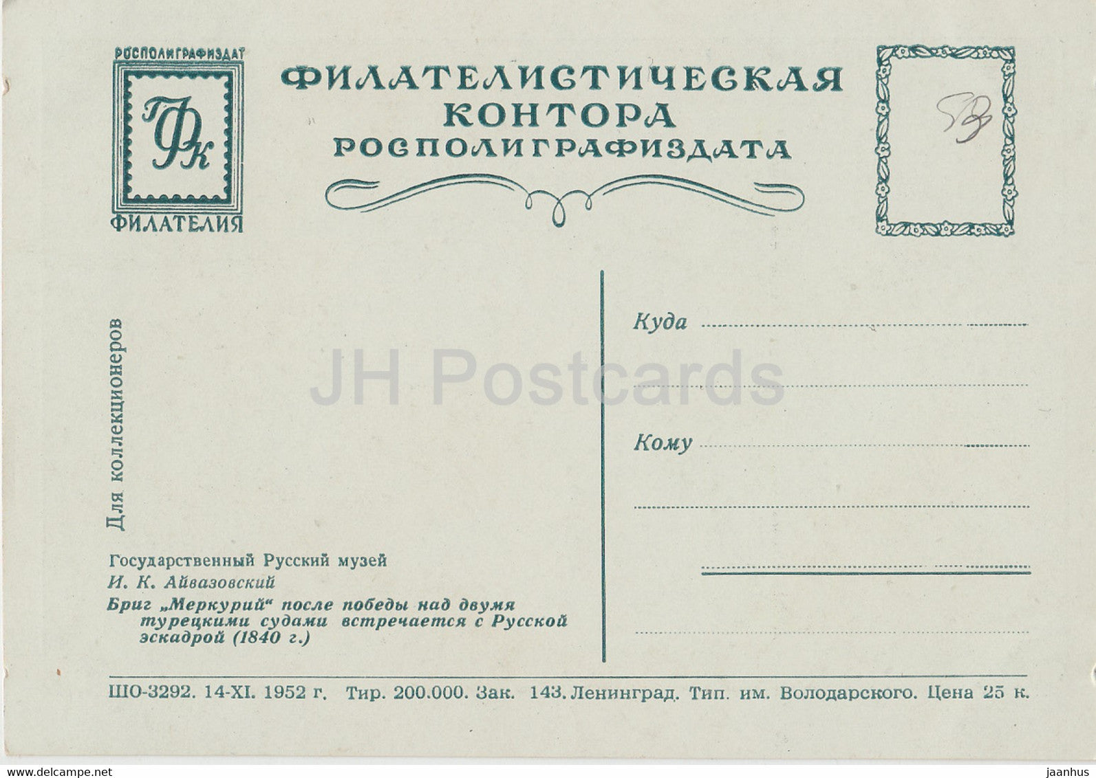 Gemälde von Ivan Aivazovsky – Brigg Mercury – Segelschiff – Russische Kunst – 1952 – Russland UdSSR – unbenutzt