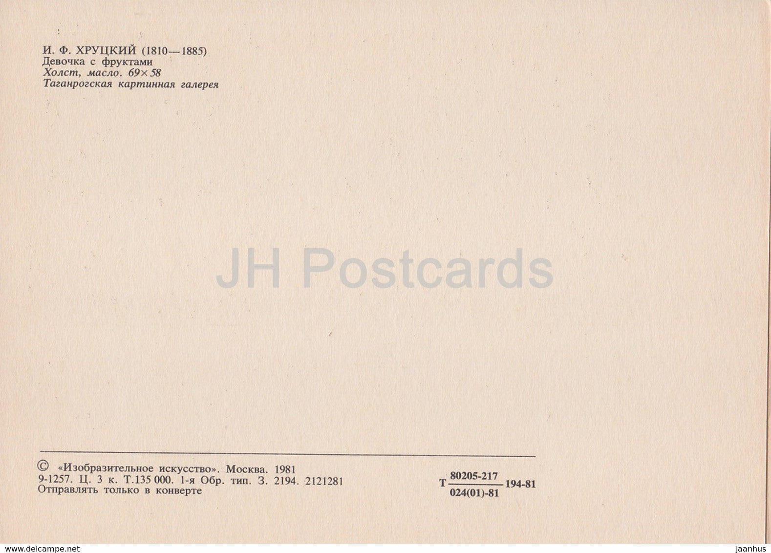 Gemälde von Ivan Khrutsky – Mädchen mit Früchten – Russische Kunst – 1981 – Russland UdSSR – unbenutzt