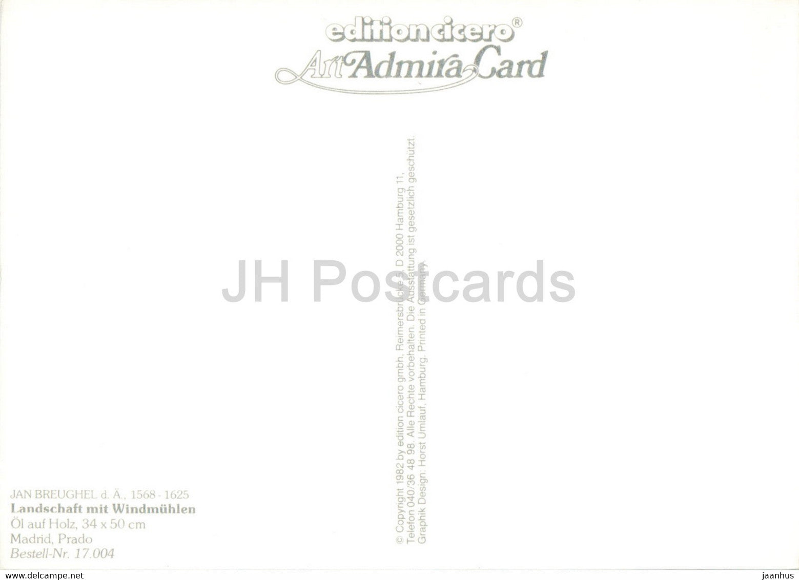 Gemälde von Jan Brueghel dem Älteren – Landschaft mit Windmühlen – Windmühle – Pferd – flämische Kunst – Deutschland – unbenutzt