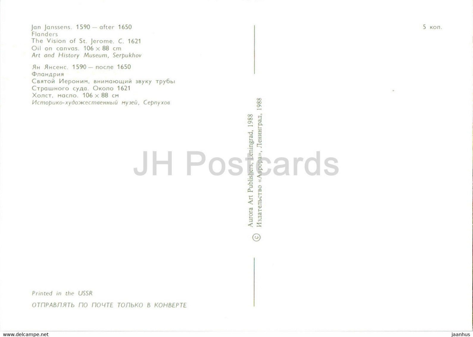 Gemälde von Jan Janssens – Die Vision des Heiligen Hieronymus – Flämische Kunst – 1988 – Russland UdSSR – unbenutzt