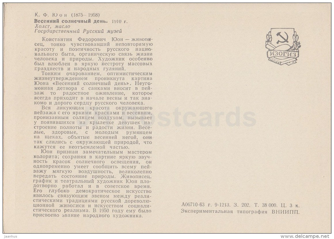 Gemälde von K. Yuon – Sonniger Frühlingstag, 1910 – Stadt – Russische Kunst – 1963 – Russland UdSSR – unbenutzt