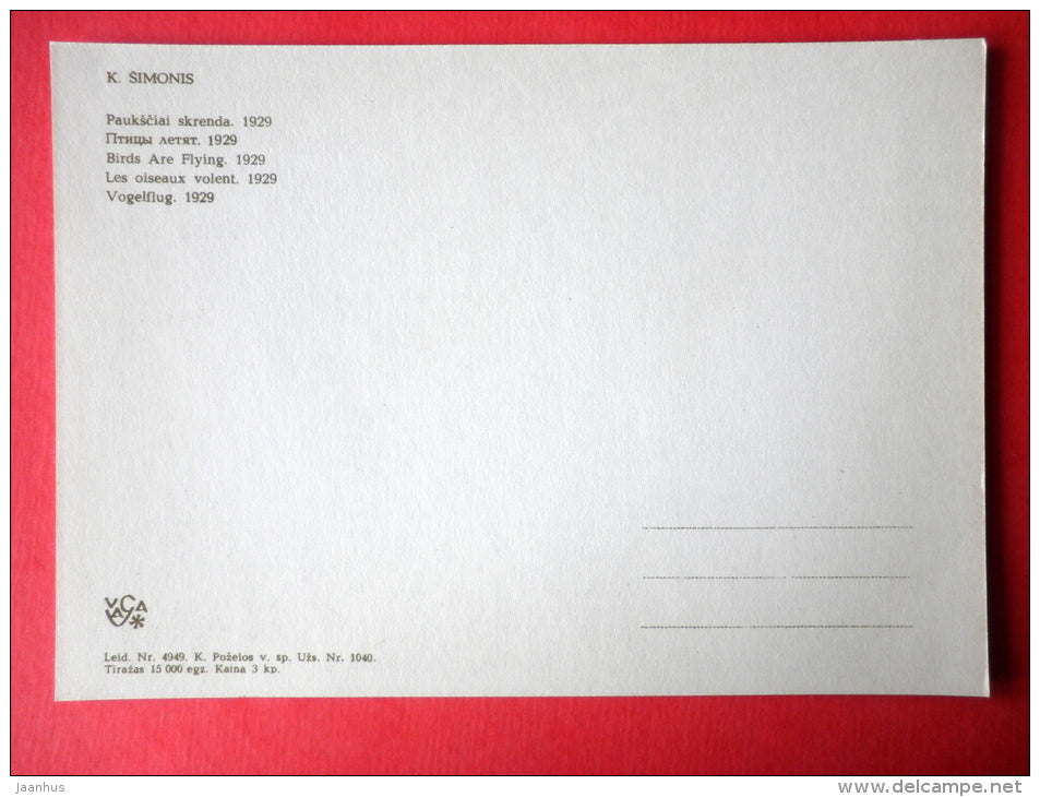 Gemälde von Kazys Simonis – Vögel fliegen. 1929 – Kinder – litauische Kunst – unbenutzt