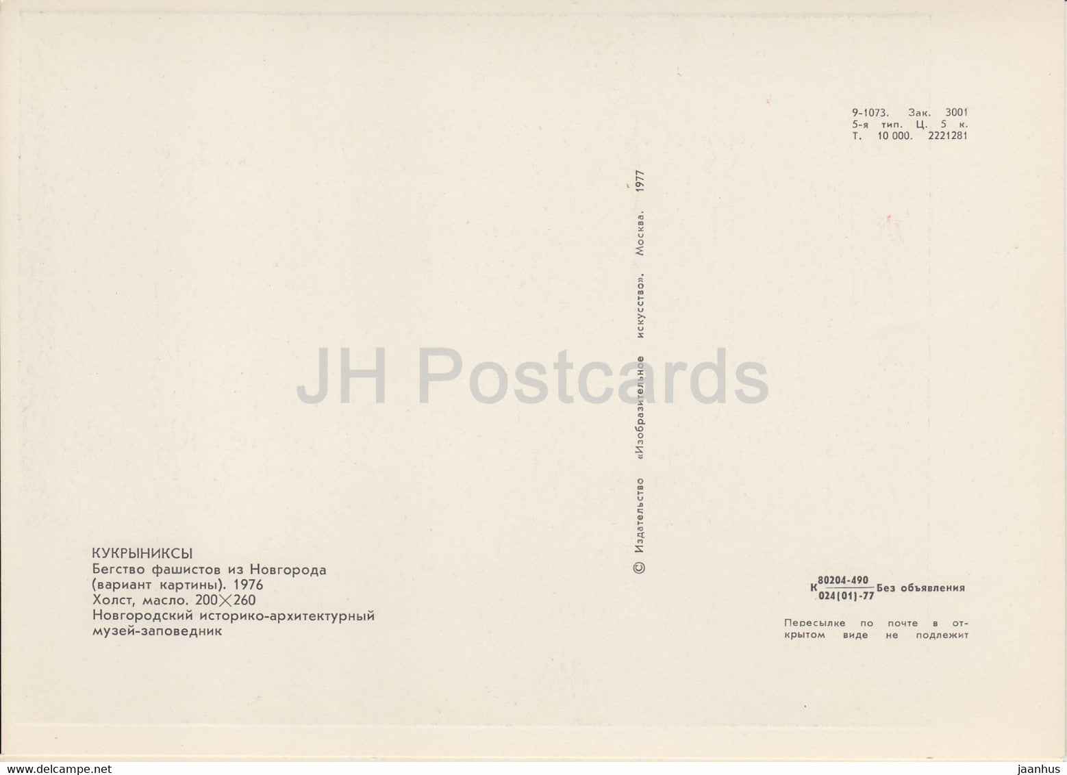 Gemälde von Kukryniksy – Die Flucht der Nazis aus Nowgorod – Kunst – großformatige Karte – 1977 – Russland UdSSR – unbenutzt