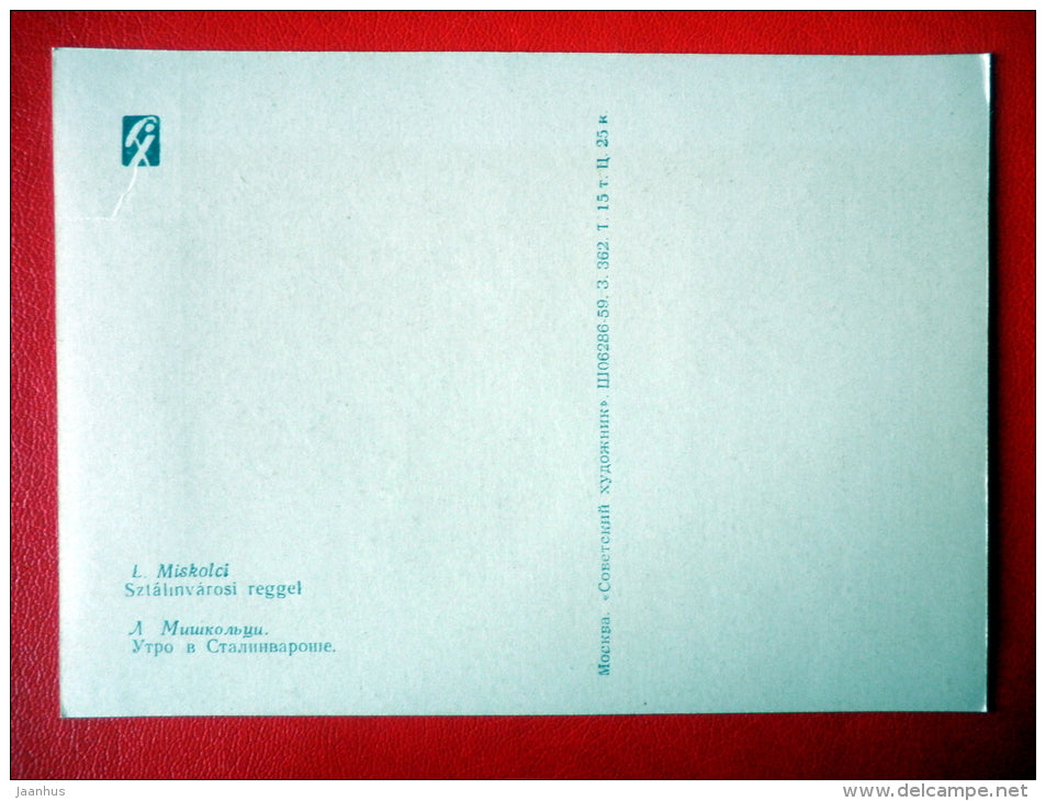 Gemälde von L. Miskolci. Morgen in Stalinvaros - Straße - ungarische Kunst - unbenutzt