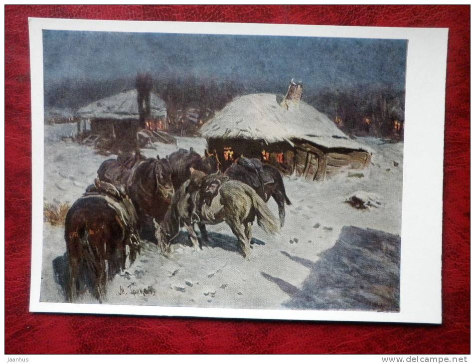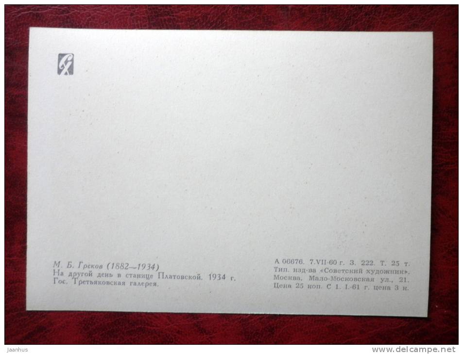 Gemälde von MB Grekov – Dorf Platovskaya, 1934 – Pferde – russische Kunst – unbenutzt