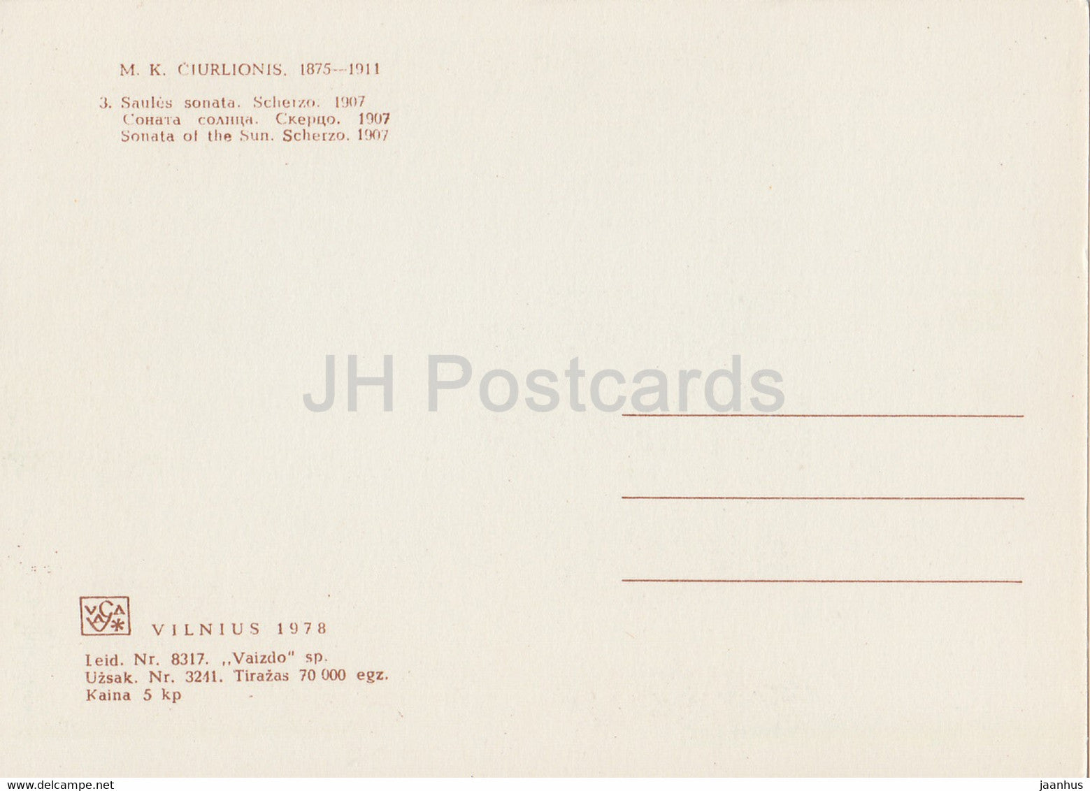Gemälde von M. Ciurlionis – Sonate der Sonne. Scherzo – litauische Kunst – 1978 – Litauen UdSSR – unbenutzt