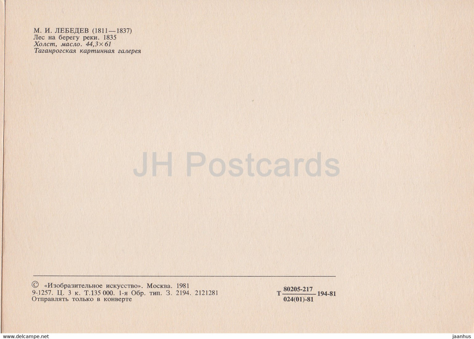 Gemälde von M. Lebedev – Wald am Fluss – Russische Kunst – 1981 – Russland UdSSR – unbenutzt