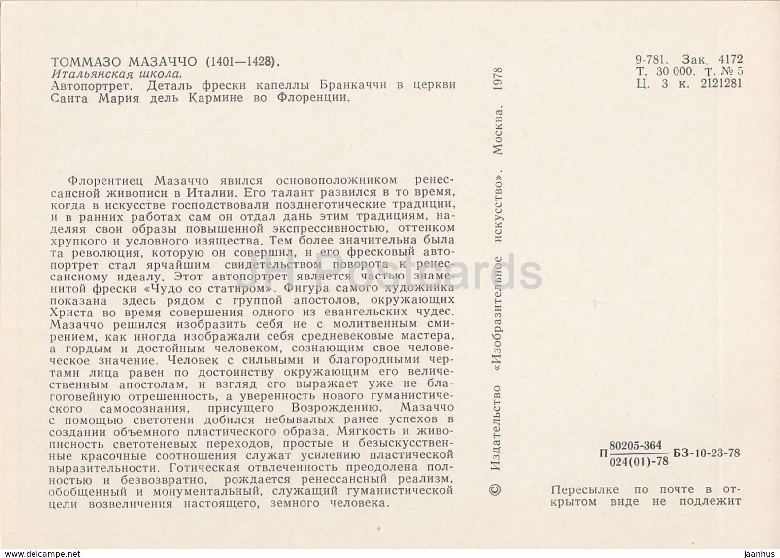 Gemälde von Masaccio – Selbstporträt – italienische Kunst – 1978 – Russland UdSSR – unbenutzt