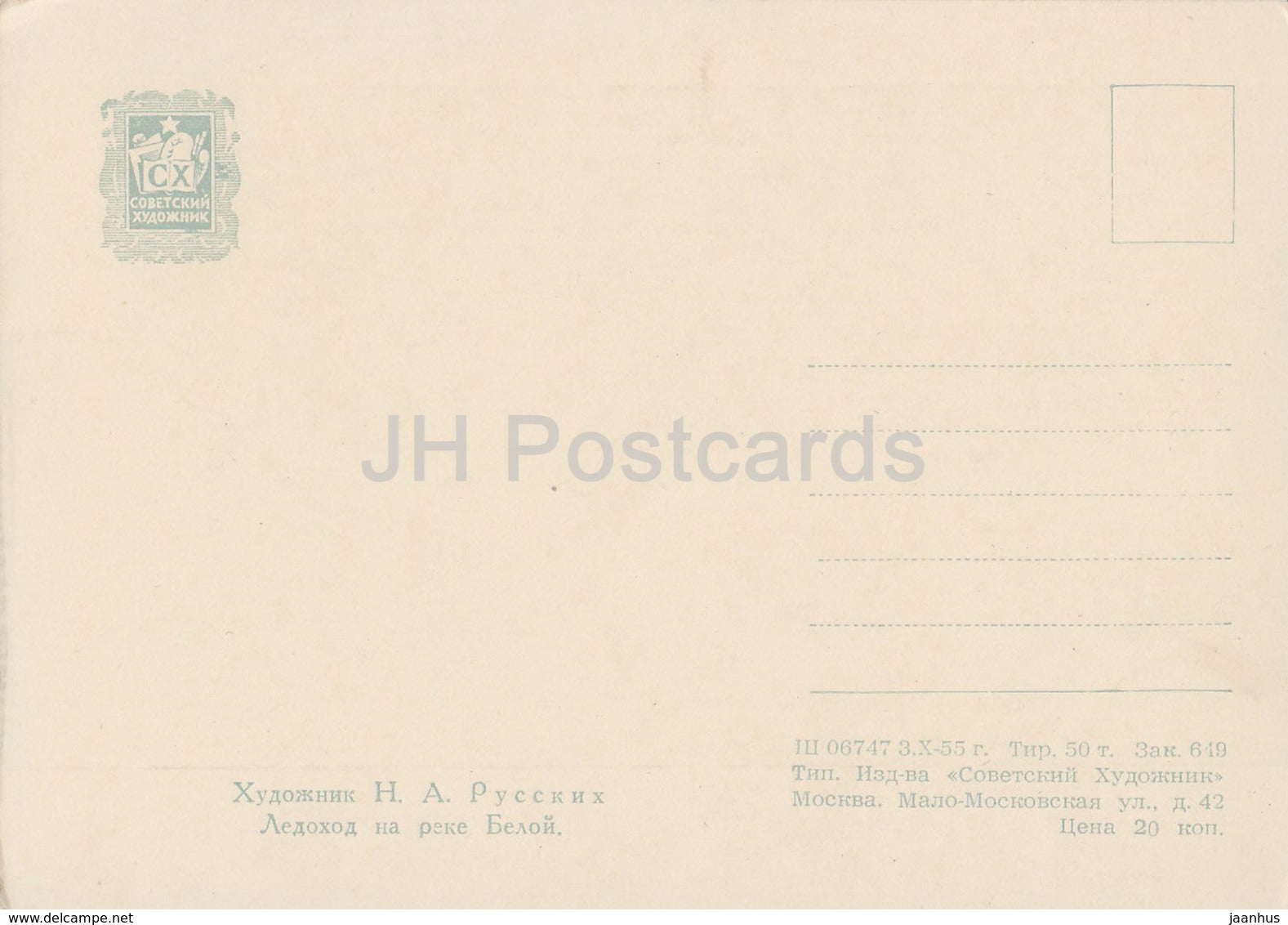 Gemälde von N. Russkih – Eisdrift auf dem Fluss Belaja – Russische Kunst – 1955 – Russland UdSSR – unbenutzt