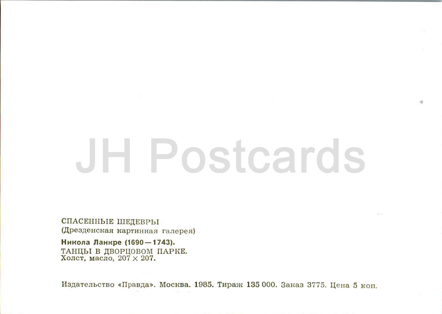 Gemälde von Nicolas Lancret – Tanz im Schlosspark – Französische Kunst – 1985 – Russland UdSSR – unbenutzt
