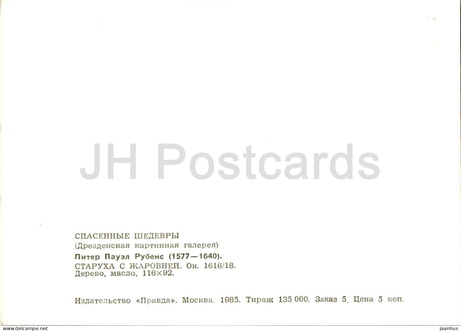 Gemälde von Peter Paul Rubens - Alte Frau mit Kohlenbecken - Flämische Kunst - 1985 - Russland UdSSR - unbenutzt