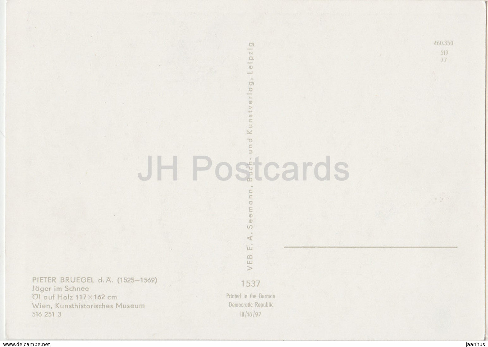 Gemälde von Pieter Bruegel – Jäger im Schnee – Jäger – niederländische Kunst – Deutschland DDR – unbenutzt