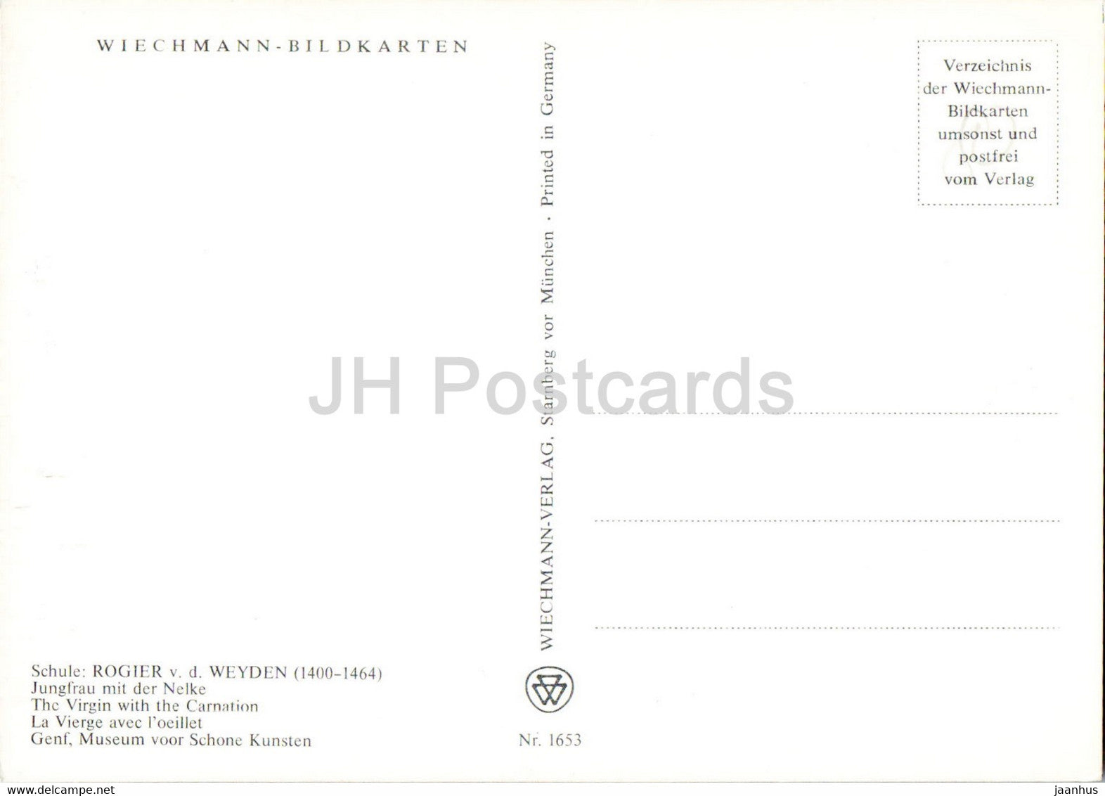 Gemälde von Rogier van der Weyden – Jungfrau mit der Nelke – Die Jungfrau mit Nelke – Flämische Kunst – Deutschland – unbenutzt