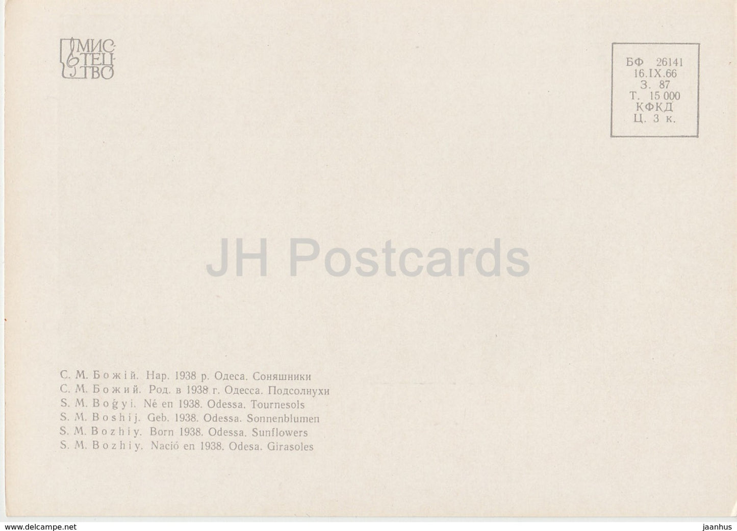 Gemälde von S. Bozhiy – Sonnenblumen – Ukrainische Kunst – 1966 – Ukraine UdSSR – unbenutzt