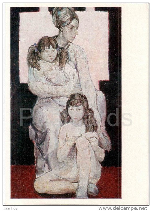 Gemälde von Svetlin Rusev – Komposition, 1973 – Familie – bulgarische Kunst – unbenutzt