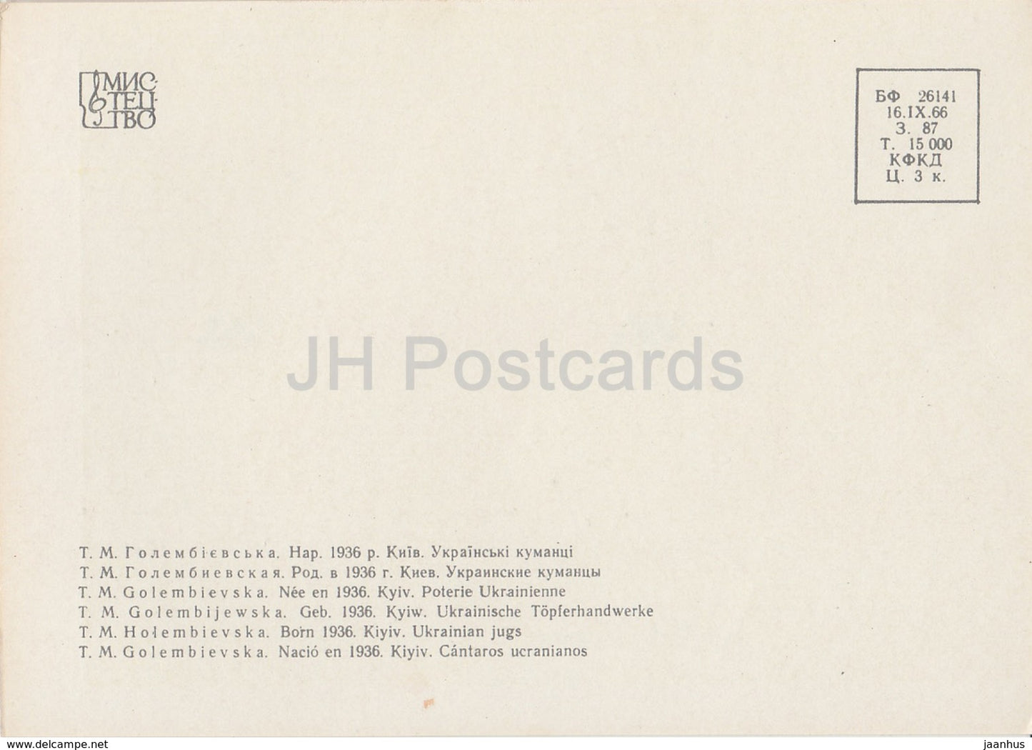 Gemälde von T. Holembievska – Ukrainische Krüge – Ukrainische Kunst – 1966 – Ukraine UdSSR – unbenutzt